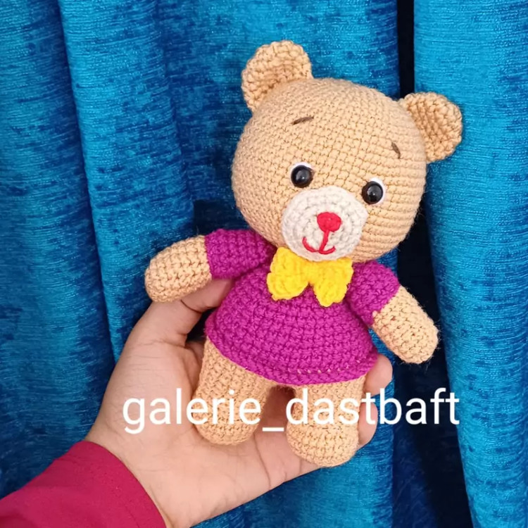 عروسک بافتنی خرس قهوه ای جنگل16سانتی بافت به رنگ دلخواه شما