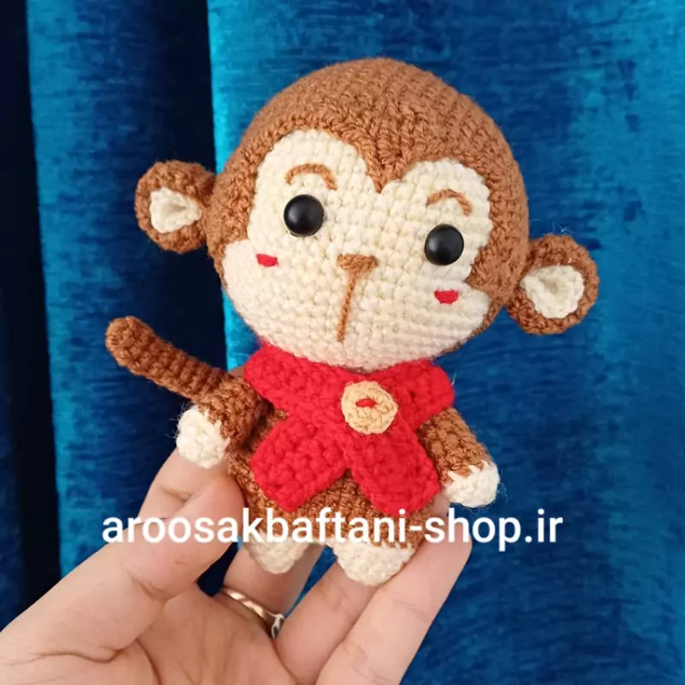 عروسک بافتنی میمون بازیگوش 11سانتی بافت بارنگ دلخواه شما