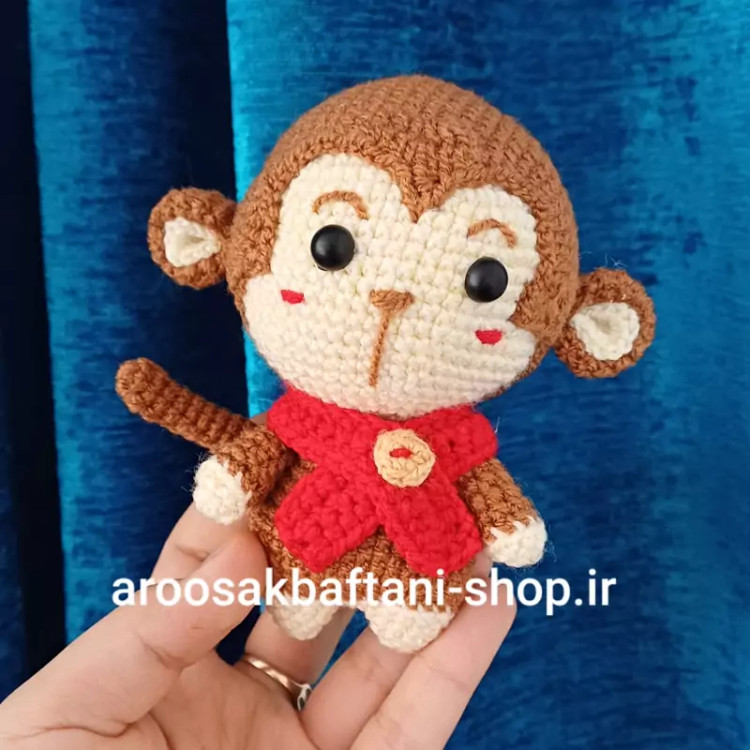 عروسک میمون بازیگوش بافتنی11سانتی بافت بارنگ دلخواه شما